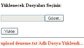 Indirme islemleri kadar Upload islemleride önemlidir. Tabi burada istemcilerin her dosya tipini veya çesidini sunucuya göndermesi dogru olmayabilir. Kapali ag(intranet) sistemlerinde bu söz konusu olabilir. Nitekim kimin handi dosyayi Upload ettiginin belirlenmesi disinda, bu kisiye ulasilmasida kolaydir :). Ancak internet tabanli daha genis sistemlerde her ne kadar kullanicilar tespit edilebilsede, kötü niyetli istemcilerin varligi nedeniyle sistemin genelini tehlikeye atmamak adina tedbirler almak dogru bir yaklasim olacaktir. Biz tabiki basit olarak Upload islemlerini ele alacagiz ve bahsettigimiz güvenlik konularini simdilik görmezden gelecegiz.